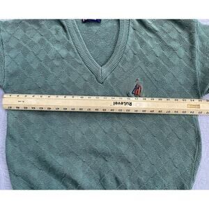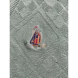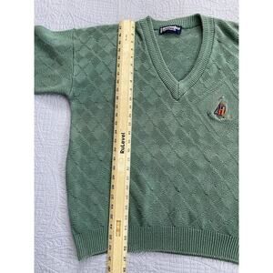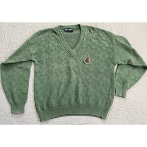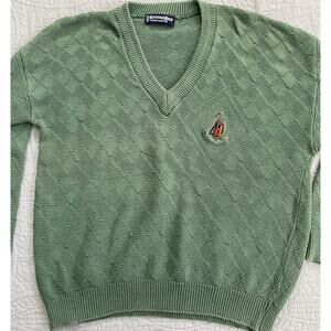 Embrace the classic Scottish Isle style with this vintage golf sweater in size L. Crafted with premium quality materials, this pullover sweater features a timeless design that never goes out of style. Perfect for a day out on the golf course or for casual wear, this sweater comes in a green color that adds an instant pop of color to your outfit.