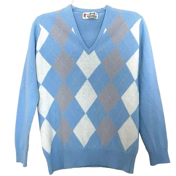 Vintage Scottish Lambswool Argyle V-neck Sweater Collegiate Old Money Preppy