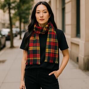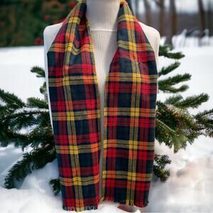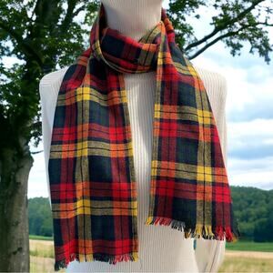 Vintage Scottish Plaid Wool Scarf Colorful Tartan Rectangular Preppy