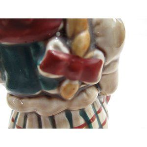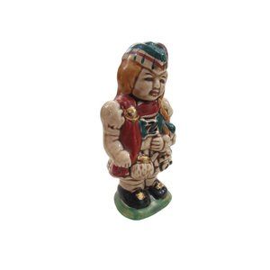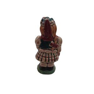 This Vintage Scottish Lass Girl In Kilt Salt or Pepper Shaker is a charming piece. With a doll in hand and a cork stopper, it's in excellent used condition, adding a unique touch to your collection. You would never it's a shaker unless your look from the top. From the front she looks like a figurine.