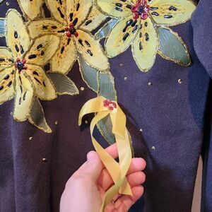 Vintage Screen Star Sweatshirt with Flowers And Ribbons Brown Women's Large
