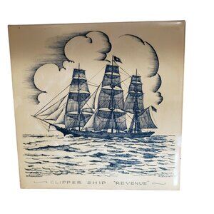 Vintage Screencraft Clipper Ship Tile Trivet Set Hippogriffe Revenue 6"x6"
