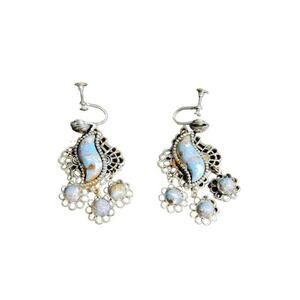 Vintage Screw Back Earrings Blue And Silver Dangle Has FLAW On 1 Has a brown mark on one earring but overall good condition