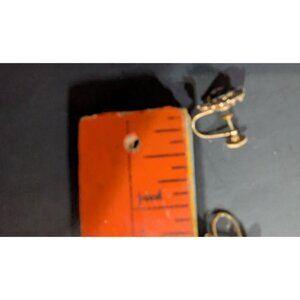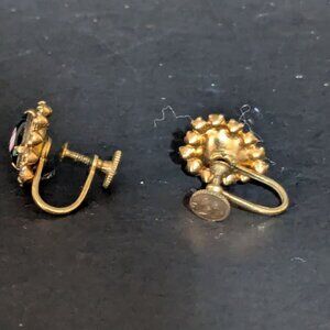 Screw-back mechanism shows slight tarnishing; rhinestones and glass cabochons intact. Top to bottom = 0.75 inch