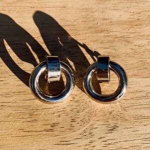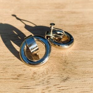 Vintage Screw Back Silver Tone Circle Clip On Earrings