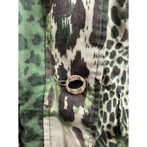 Vintage Script Women’s Green Animal Print Button Down Blouse W/ Pockets Size 14