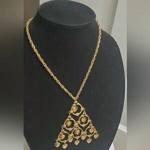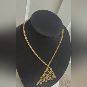 Vintage Scrolled Christmas Tree Heart Pendant Necklace. 🌴