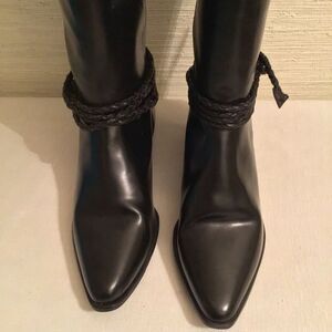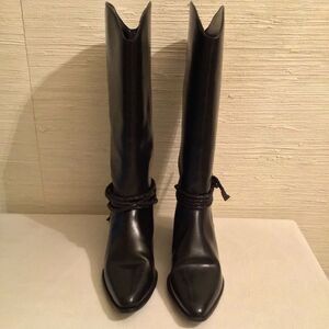 Step out in style with these sleek black leather boots. Perfect for any occasion, these boots offer both comfort and elegance.