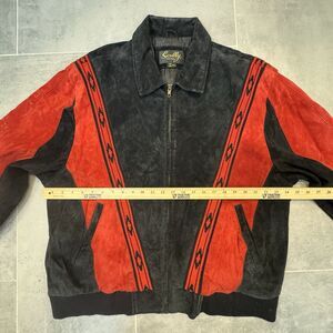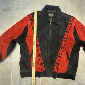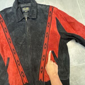 Vintage Scully Red & Black Suede Southwestern Aztec Leather Jacket Men's 2XL