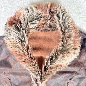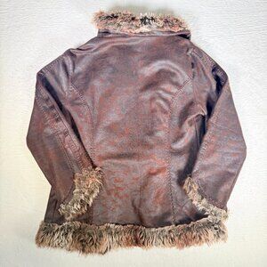 Vintage Scully Womens Jacket Faux Shear Faux Leather & Fur XSmall brown Boho