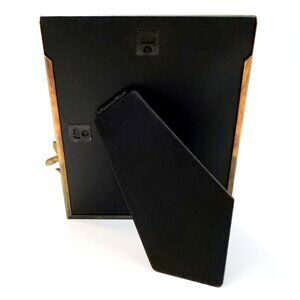 Vintage copper metal tabletop/wall picture frame with sculptural metal leaves. Vertical or horizontal orientation, glass cover. Overall size is 6"X7.25". It fits a photo image of 4"X5.5". Good condition with a few minor scratches.