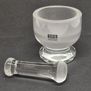 Vintage Sea Glasbruk Crystal Mortar and Pestle Kosta Sweden Clear Frosted Glass.