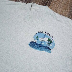 Vintage Sea Hawk Sailing T-Shirt Gray USA Made 90s Nautical Boat Graphic XL