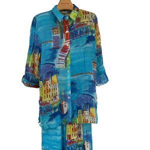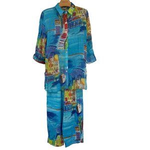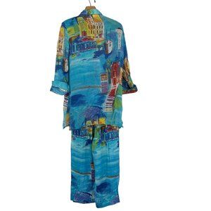 Vintage Sea Suns Outfit 2 Piece Set size medium crop pants semi sheer top tunic