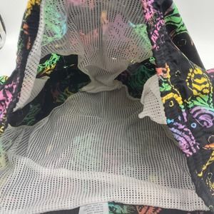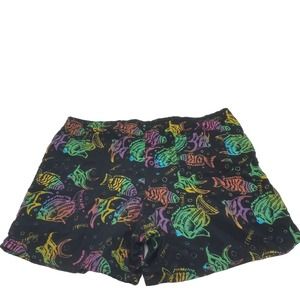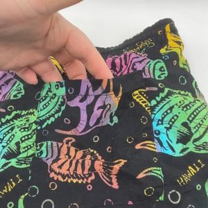 Vintage Sea Waves Swim Shorts Black w/ Rainbow Fish Hawaii Spellout Pattern