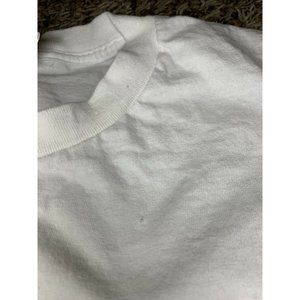 Shirt has no stains but does have a very tiny hole near the top collar, can be seen in one of the pictures