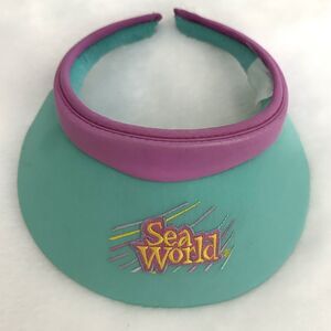 Vintage Sea World Sun Visor One Size Retro Turquoise Purple San Diego Theme Park