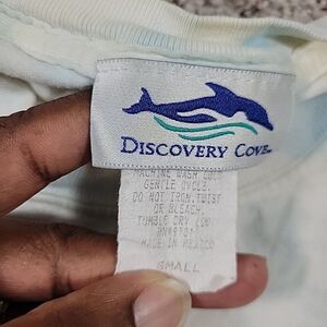 Vintage Sea World T-Shirt Adult Small Dolphins Fish Print Graphic Discovery Cove. A little staining at neck /pit