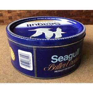 Vintage Seagull Danish Butter Cookie Tin Round Beach House Decor Denmark Rare