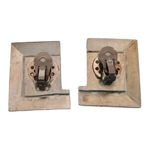 Vintage Seagull Pewter Modernist Geometric Earrings 1988 Signed Clip-On