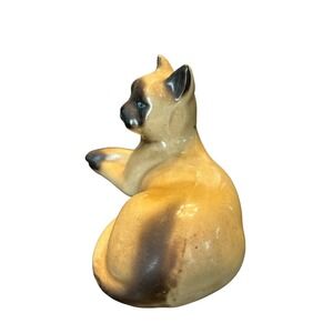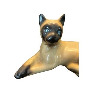 Vintage Seal Point Blue Eyed Siamese Cat Figurine 6x4 Inches MCM Brazil