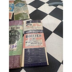 The packaging seems damaged but products look good. Enliven your sewing projects with this curated collection of vintage seam binding and bias tape! Offered are five vibrant, nostalgic finds, each a testament to timeless craftsmanship. Notice the rich hues and crisp textures that evoke a sense of retro charm. The seam binding by Wrights and Boilex provides durability, while the Star bias tape promises flexibility. These vintage notions are not just supplies; they're historical gems that bring a unique, personal touch to your handcrafted creations. Perfect for adding authentic flair to quilts, apparel, or home decor, as well as ideal for crafting enthusiasts who appreciate the allure of vintage details.