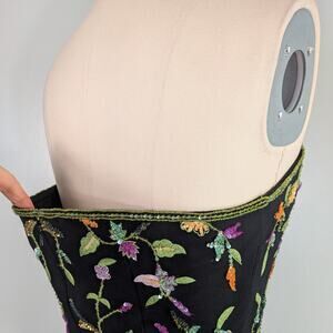 Y2K Floral Silk Prom Dress Strapless Maxi Gown by Sean Collection Couture - Size Large - Black with Green, Pink, Red, Yellow, Purple, & Orange