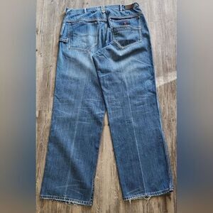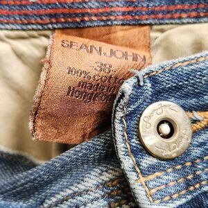 Vintage Y2K Sean John Double knee Baggy Jeans size 38x34, wide leg. Leg opening is 10.5. In good condition. They have a double back pocket on one side. some slight wear around the front pockets. and some fraying on the bottom, shown in pics.