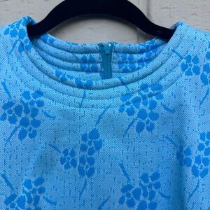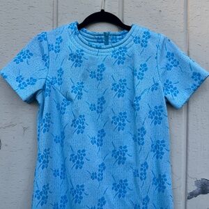Vintage Sears 60s 70s Blue Floral Retro Mod Short Sleeve Sheath Dress