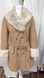 Old-Hollywood GLAM energy. Camel-colored wool coat features dramatic plush faux-fur shawl collar, matching fur-trim cuffs. Luxe 60s movie-star silhouette. Double-breasted front, structured tailoring, matching belt with round buckle create a flattering, cinched shape that feels elegant but still cozy and wearable.