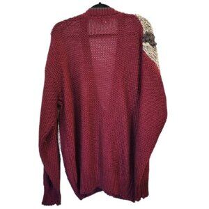Vintage Sears 80's Hand Knit Chunky Knit Oversized Cardigan Sweater Red Gray