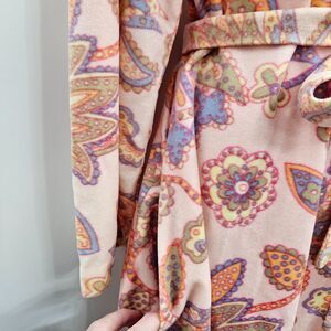 Vintage Sears At Home Wear Belted Robe Paisley Print Fleece Pockets Pink 70s M/L 56