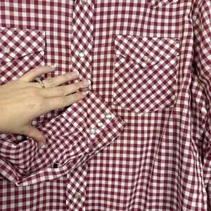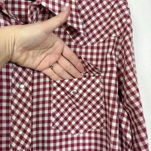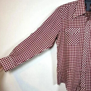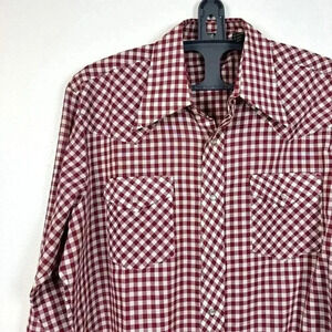 Vintage Sears Authentic Western Men Shirt Large Red White Check Pearl Snap