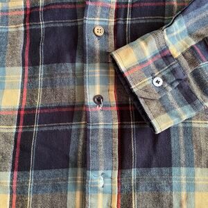 Vintage Sears Blue Red Plaid Long Sleeve Button Down Flannel Shirt 80s Mens L