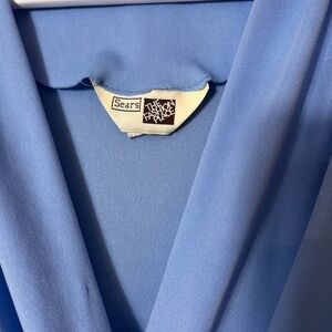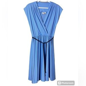 Vintage Sears Blue Wrap Dress Cap Sleeve Midi 70s 80s Boho Retro Chic Size 14P