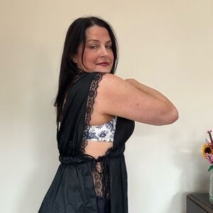 Experience comfort and elegance with this black lace trim lingerie- I styled as a sexy top