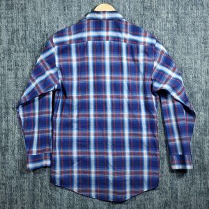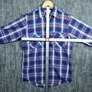 Vintage Sears Fieldmaster Shirt Mens Medium Blue Plaid Flannel Perma Prest 80s