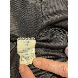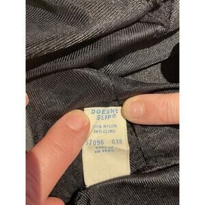 This vintage Sears slip top is a must-have for any glam rock lover's wardrobe. The black nylon material and original 1980s design make it a unique addition to any everyday outfit. The size 38 and regular fit make it comfortable and easy to wear for any occasion. The anti-cling feature adds an extra touch of comfort and the L intimates size ensures a perfect fit for women.