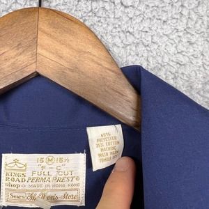 Vintage Sears Kings Road Shirt Mens Medium Blue Full Cut Perma Prest 70s 80s NOS