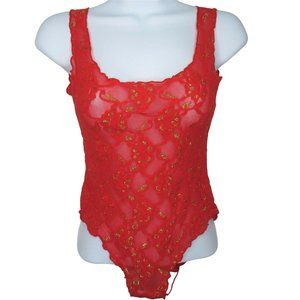 Vintage Sears Lingerie Teddy One Piece S Red Nylon Gold Metallic USA Deadstock