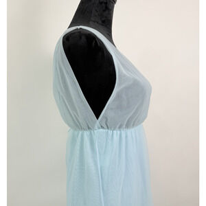 Vintage Sears Long Nightgown Size 32/34 (S/M?) Blue Sheer Bust Plunge V Neck