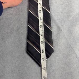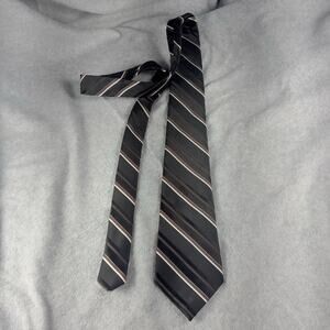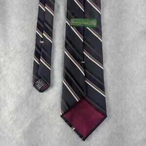 Vintage Sears Men's Store Necktie Short Black Striped Slim Silk Polyester Dinner