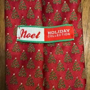 Crafted for the festive gentleman, the Vintage Noel Holiday Collection Christmas Tree Foulard Tie from Sears is a yuletide accessory extraordinaire. Its classic width ensures a timeless knot, while the vibrant red hue makes a bold statement. Made from durable polyester, this tie is designed to add a touch of Christmas cheer to your holiday attire for years to come. With a nod to classic styling, this tie features a charming Christmas tree motif that captures the spirit of the season. Whether you're dressing up for a holiday party or looking to add some festive flair to your office wear, this tie is a versatile addition to any wardrobe.