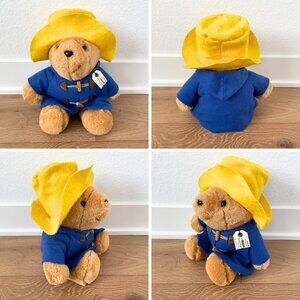 Sears store exclusive plush vintage toy. Design details include shiny black eyes, hard black nose, sewn in felt blue coat with buckles that you can undo, sewn in felt yellow hat, tag attached to collar with iconic “Please look after this bear, thank you.”