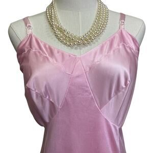 Vintage Sears Pink Antron Nylon Shadow Panel Full Slip Dress Women Size 38 NWOT