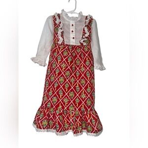 Vintage Sears Red and White quilted Christmas ornament Dress Sz 4T lace