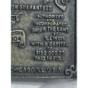 This vintage Sears Roebuck & Co. belt buckle is a nostalgic relic from a bygone era, emblematic of a time when craftsmanship and customer satisfaction were paramount. Featuring the iconic Statue of Liberty and the promise of "Satisfaction Guaranteed," it serves as both a functional accessory and a historical keepsake.