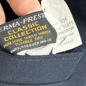 Add a touch of vintage charm to your wardrobe with this Sears Roebuck & Co PERMA-PREST Classic Collection reversible vest in size 42R. Featuring a Navy Blue/Blue side and a Grey/White side, this retro piece offers two versatile looks in one. Perfect for collectors, vintage enthusiasts, or anyone who appreciates classic menswear.
