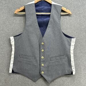 Vintage Sears Roebuck PERMA-PREST Reversible Vest Men's 42R Large Navy Blue Grey