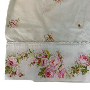Vintage pillowcase pair with delicate pink rose and green leaf pattern, crafted by Sears, Roebuck and Co. in the USA. Soft, comfortable bedding with a nostalgic aesthetic.